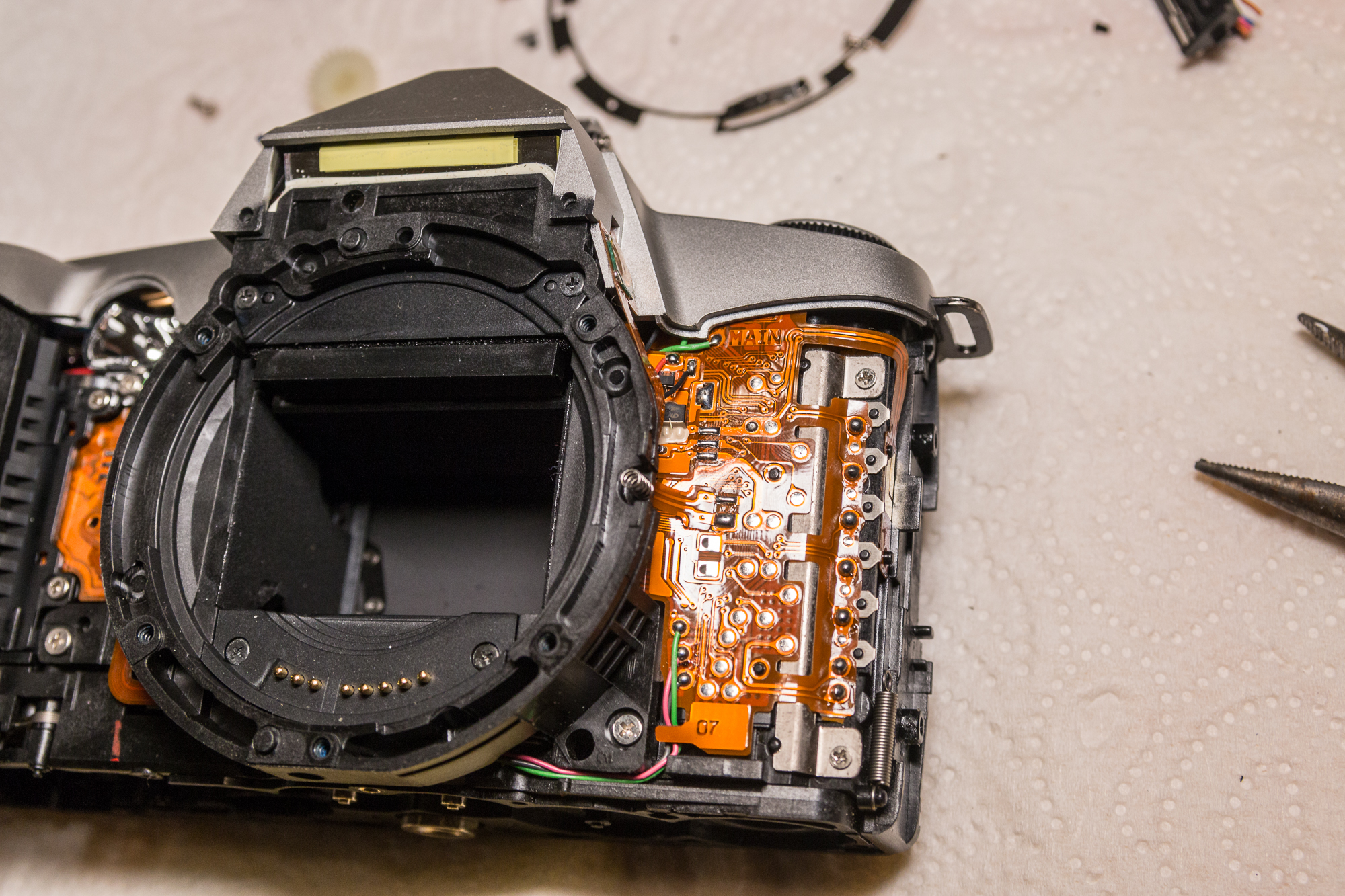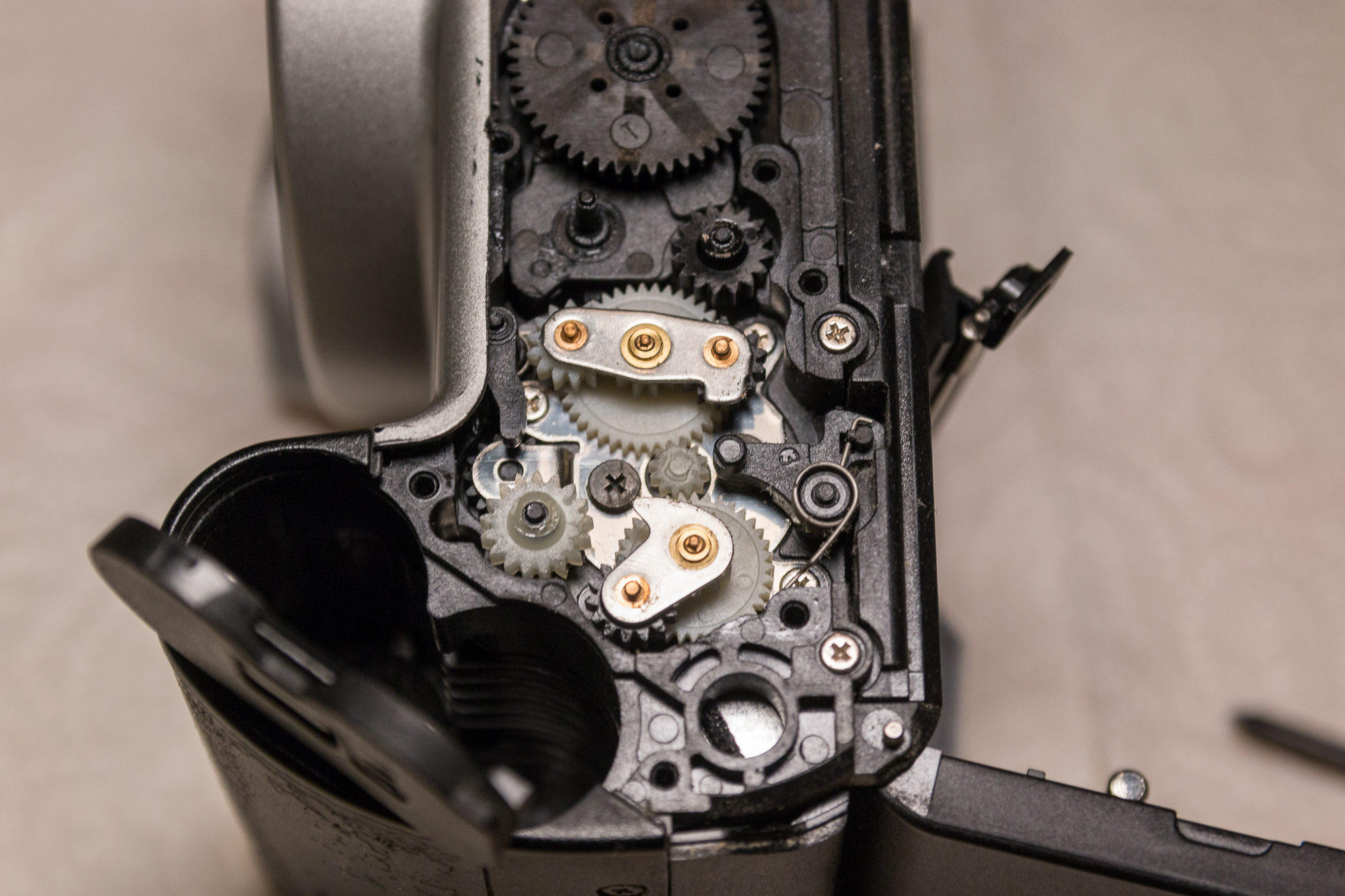 An der Canon fällt im Vergleich zur Praktica auf, dass mehr Plastik verbaut wurde. Elektronik ist auch mehr drin, Autofokus und TTL-Blitzsteuerung lassen sich mit Zahnrädern schlecht realisieren. 😉