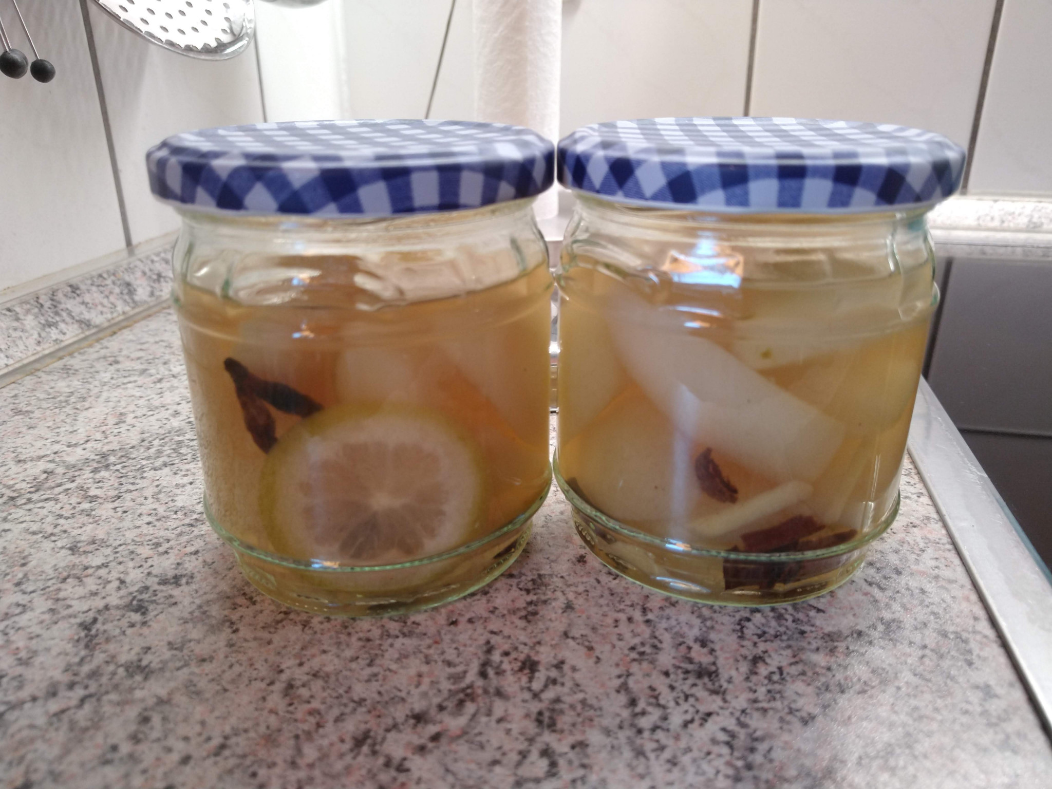 Entweder ca. 10min weich köcheln lassen oder gleich in Gläser füllen und einkochen. Dabei die Gewürze so gut es geht auf die Gläser aufteilen.