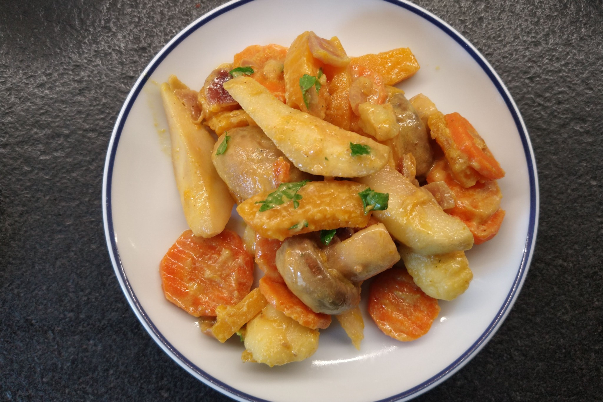 Kürbis-Gnocchi-Pfanne Veröffentlicht am 16. Oktober 2022 von madurste — Keine Kommentare ↓ Zwiebel, Karotten, Kürbis anbraten. Champignons mitbraten. Saure Sahne hinzufügen, unit Salz, Pfeffer und Curry abschmecken. Derweil Gnocchi nach Packungsanweisung kochen und dazu geben. Zum Schluss ein paar Birnenachtel erwärmen.